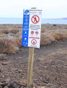La actuación desarrollada en el Monumento Natural de La Corona da continuidad a la estrategia de ordenación y protección de los espacios naturales que el Cabildo de Lanzarote puso en marcha el pasado año con la renovación de la señalética en el Monumento Natural de Los Ajaches. En aquel caso, se incorporaron carteles con iconografía clara y multilingüe, así como elementos de control para prevenir accesos no autorizados, con resultados positivos en materia de sensibilización y reducción de impactos sobre el entorno.