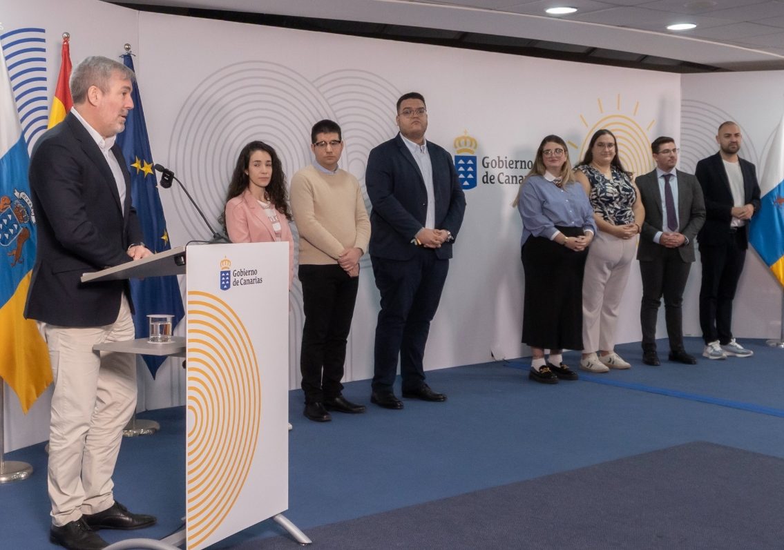 El presidente de Canarias estuvo acompañado en el acto por la consejera de Bienestar Social, Igualdad, Juventud, Infancia y Familias, Candelaria Delgado, el consejero de Agricultura, Ganadería, Pesca y Sostenibilidad Alimentaria, Narvay Quintero, y el director general de Juventud, Daniel Morales.