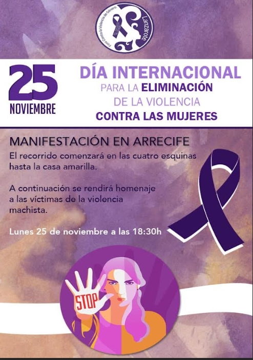 El mismo lunes 25 de noviembre se llevará a cabo un acto simbólico en honor a las víctimas de violencia de género. El acto consistirá en un minuto de silencio que tendrá lugar a las 12:00 horas en la fachada principal del Cabildo. Y a partir de las 18:30 horas tendrá lugar una manifestación en conmemoración a las víctimas de la violencia de género, en Arrecife, en colaboración con el Foro contra la violencia de género.