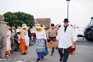 El cortejo avanzó por las calles Sereno, Rubicón, Calderetas y Párroco San Martín, hasta desembocar en la plaza León y Castillo, donde cientos de personas se congregaron para vivir de cerca esta expresión popular de convivencia y tradición. Durante todo el trayecto se sucedieron las muestras de folclore, los bailes populares y el reparto de productos típicos, en un ambiente de hospitalidad que caracterizó la jornada.