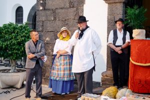 Isas, folías y productos típicos ponían sabor, color y ritmo durante todo el trayecto de la romería que culminó en la plaza León y Castillo, espacio donde se celebró la elección del Romero y la Romera de las fiestas patronales de San Bartolomé, distinción que este año recayó en Rubén Valiente y Luisa Rodríguez, por representar con el mayor rigor la indumentaria típica y la actitud tradicional que contribuyen al mantenimiento y difusión de nuestras fiestas.