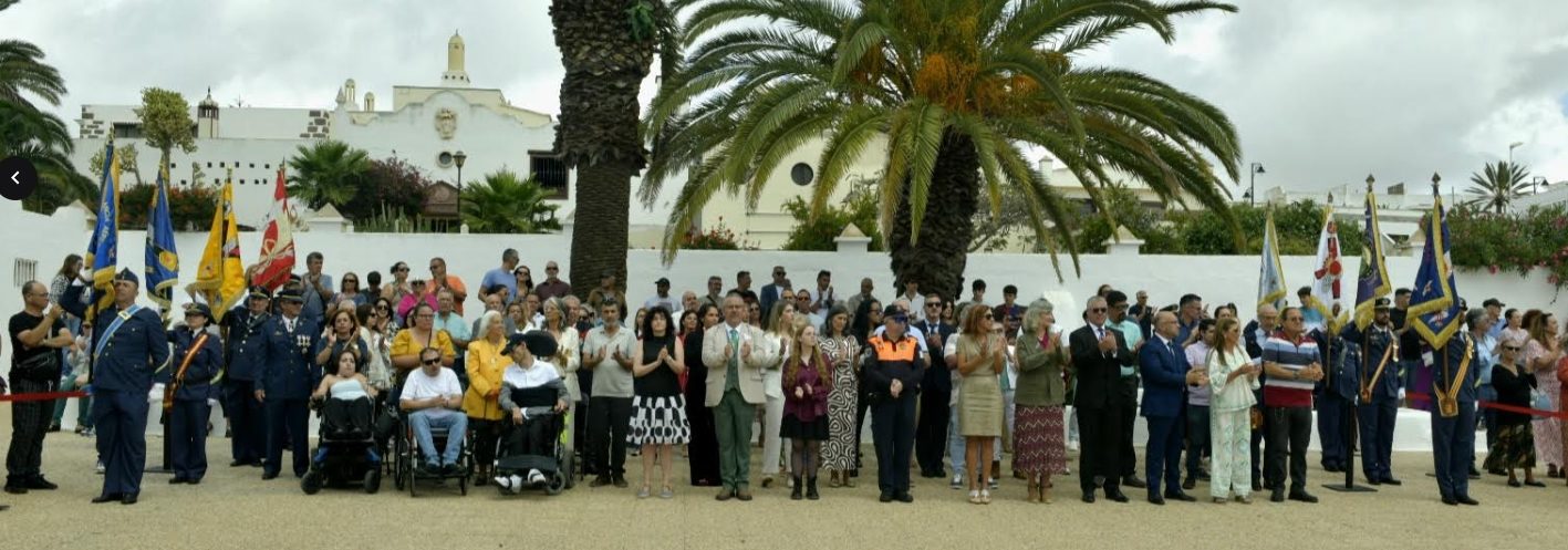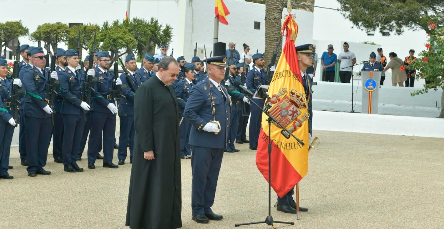 El acto comenzó con la llegada del general segundo jefe del Mando Aéreo de Canarias, acompañado por el alcalde de San Bartolomé, Isidro Pérez Martín. Tras recibir los honores de ordenanza, el general Ballesta pasó revista a la fuerza participante, compuesta por una Escuadra de Gastadores, dos secciones formadas con personal de la Base Aérea de Lanzarote y Escuadrón de Vigilancia Aérea n.º 22, así como la Unidad de Música del Mando Aéreo de Canarias y los Guiones de las unidades del MACAN.