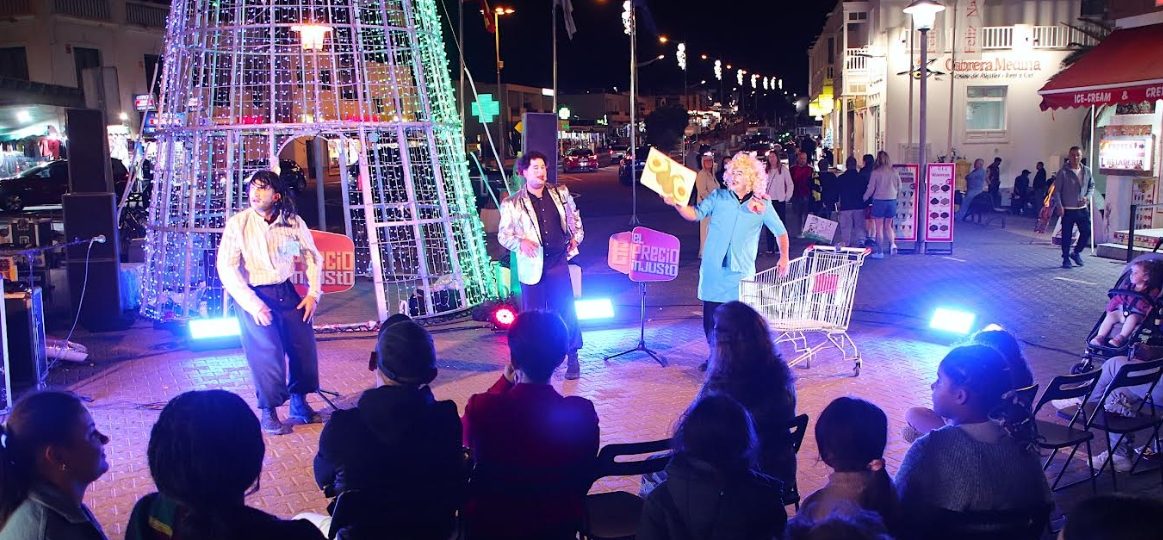 El público disfrutó en Playa Blanca de la propuesta reflexiva y vanguardista de la compañía teatral Abubukaka, que nos enseña el diario acontecer desde una óptica tan crítica y cargada de humor negro que inevitablemente nos aterriza en la cruda realidad. La obra Foscurí se anticipó el jueves pasado al temporal para cuestionar, en medio de lo absurdo, el turismo de masas, la xenofobia, el odio y el postureo en redes sociales, todo en un espectáculo de poco más de una hora, protagonizado por tres actores en plena calle Limones de la localidad sureña.