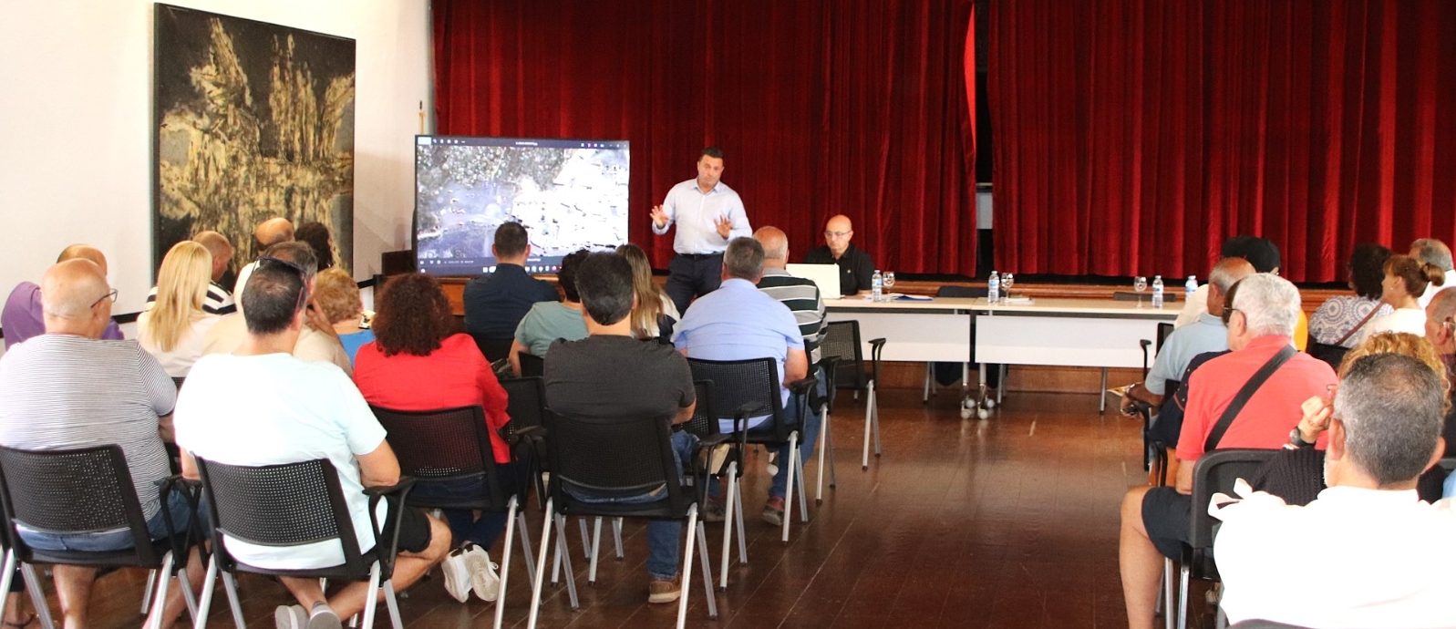 Sobre el proyecto de saneamiento, el alcalde y el ingeniero técnico de obras públicas respondieron a todas las inquietudes ciudadanas, incluyendo la localización de la estación de bombeo subterránea, la estación depuradora ubicada en la parte alta del pueblo y las obras interiores que tendrían que realizar los propietarios de los inmuebles para engancharse a la red y así conseguir el salto de calidad medioambiental que persigue el proyecto.