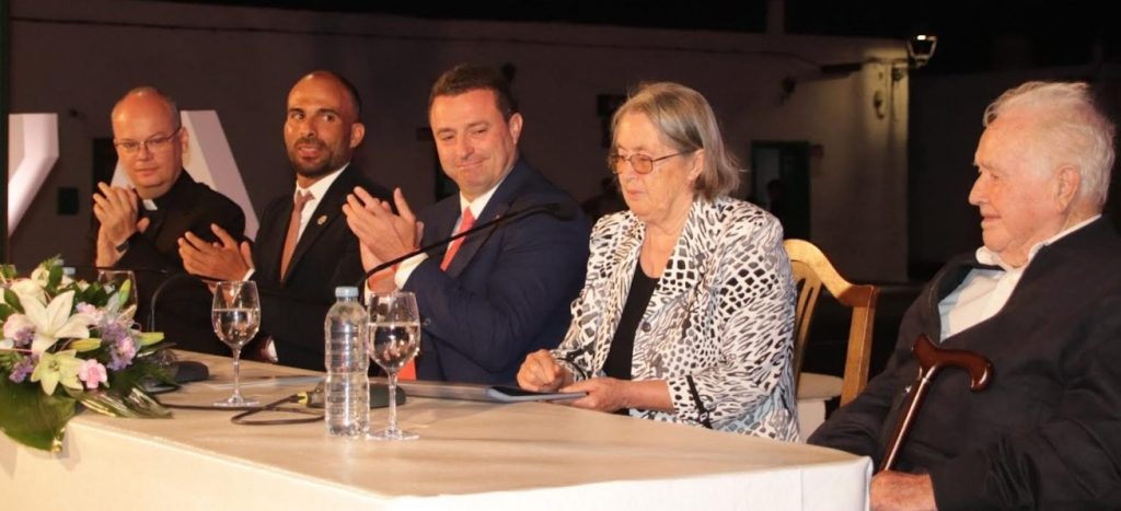 “Un día a las tres de la mañana una señora tocó a la puerta porque había recibido un aviso de un certificado que tenía que recoger en la oficina de Arrecife, pero ella pensó que era en Yaiza y vino a recogerlo aquí. El cartero se levantó abrió la ventana y le explicó lo que tenía que hacer y la señora se fue tranquila”, narró Juana González, como anécdota del compromiso que su familia tenía con la ciudadanía, acompañada en la mesa por su hermano Enrique, el alcalde de Yaiza, Óscar Noda, el concejal de Festejos, Daniel Medina, y el párroco de Yaiza, Jonathan Almeida.